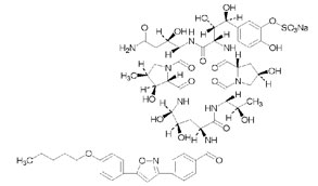 化学名称:5-[(1S, 2S)-2-[(3S, 6S, 9S, 11R, 15S, 18S, 20R, 21R, 24S, 25S, 26S)-3-[(R)-2-氨甲酰基-1-羟乙基]-11, 20, 21, 25-羟丁基-15-[(R)-1-羟乙基]-26-甲基-2,5,8,14,17,23-六氧代-18-[4-[5-(4-戊氧基苯基)异恶唑-3-基]苯甲酰氨基]-1,4,7,13,16,22-六氮杂三环[22.3.0.09,13]二十七-6-基]-1,2-二羟乙基]-2-羟苯基硫酸钠。