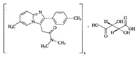 | 【成份】 | 本品主要成份为酒石酸唑吡坦。 化学名称:N,N,6-三甲基-2-(4-甲基苯基)咪唑并[1,2-ɑ]吡啶-3-乙酰胺-L-(+)-酒石酸盐。 化学结构式: