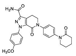 | 【成份】 | 本品主要成份为阿哌沙班。 化学名称:1-(4-甲氧基苯基)-7-氧代-6-[4-(2-氧代哌啶-1-基)苯基]-4,5,6,7-四氢-1H-吡唑[3,4-c]-吡啶-3-甲酰胺 化学结构式: